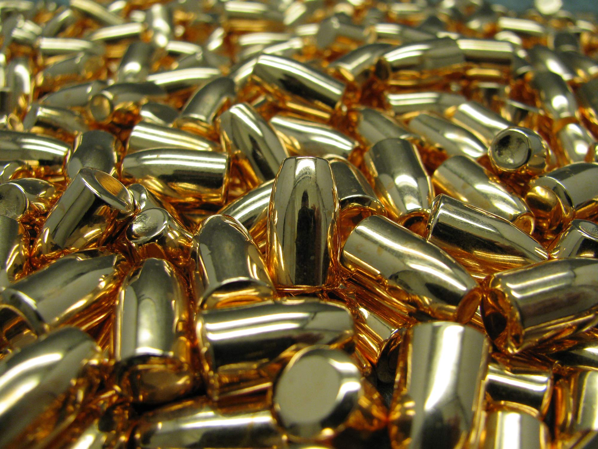 Close-up of copper plated 9mm casings Published October 25, 2013 at 3456 × 2592 in Electrolytic Plating Services ← Previous Next →