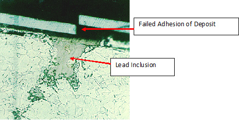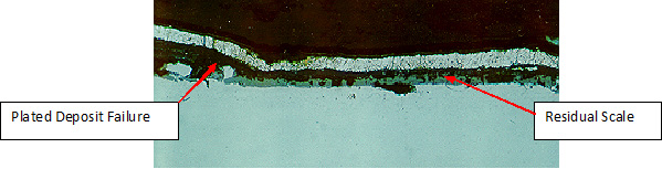 Figure F.5: Failed Adhesion of a Deposit due to Heat Treat Scale
