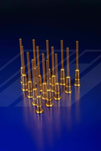 Hard gold plating is formed with the addition of non-noble metallic elements alloyed with the gold deposit – typically cobalt, nickel or iron. These elements alter the grain structure of the deposit resulting in a finer grain structure that is more lustrous and more resistant to sliding wear. Hard gold deposits consist of a very small grain size measuring 20-30nm whereas soft gold plating which has a typical grain size of 1-2um or approximately 60x larger than soft gold. Hard gold commonly has a hardness between 130-200 HK25 with a hardness of up to 200 HK25 possible. Soft gold typically has a hardness of 20-90 HK25 making it very susceptible to sliding wear or wear from contact switching.