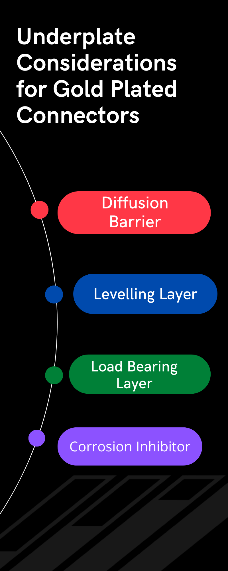 A nickel underplate is typically recommended for most gold plated connectors or contacts especially if the substrate is a copper or copper alloy. Nickel serves several key fun