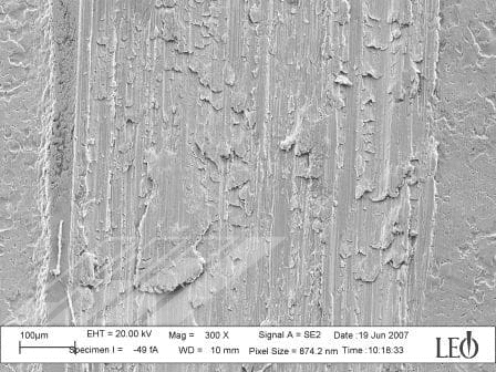 Today’s firearms cycle faster, more often and with higher chamber pressures than ever before. The expanded use of +P and +P+ loads to push the performance window of compact weapons has further pushed the limits of traditional designs. Unlike firearm coatings, which can rely on oil and other lubricants for proper function, ammunition must rely on unlubricated or dry film methods to perform reliably. Most traditional ammunition component materials such as brass, lead and copper are softer materials that have a higher coefficient of friction and can gall during cycling as shown in Figure 1. The use of nickel plating on casings has helped to address this issue by providing a harder surface layer to reduce the tendency of galling during chambering and cycling of actions.