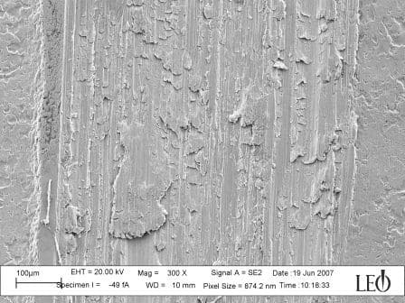 Soft Metal Galling Surface Deformation Published January 6, 2016 at 448 × 336 in Electrolytic Plating Services ← Previous Next → 300x Magnification of Surface Deformations Resulting from Galling of Soft Metal