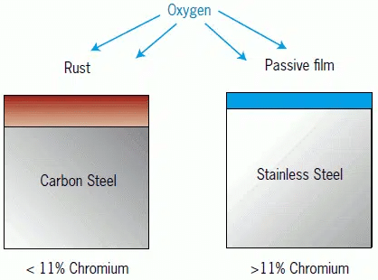 Stainless Steel (e.g. 304 or 316 Stainless Steel or 303 or 416 Free Machining Stainless Steel) is often thought of as being free from corrosion. However, stainless steels are very susceptible to attack from chlorides found in bleach or salt water and can form traditional rust readily in these environments.